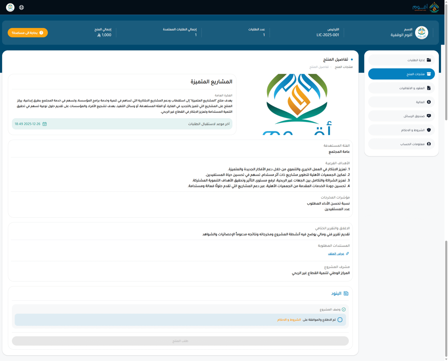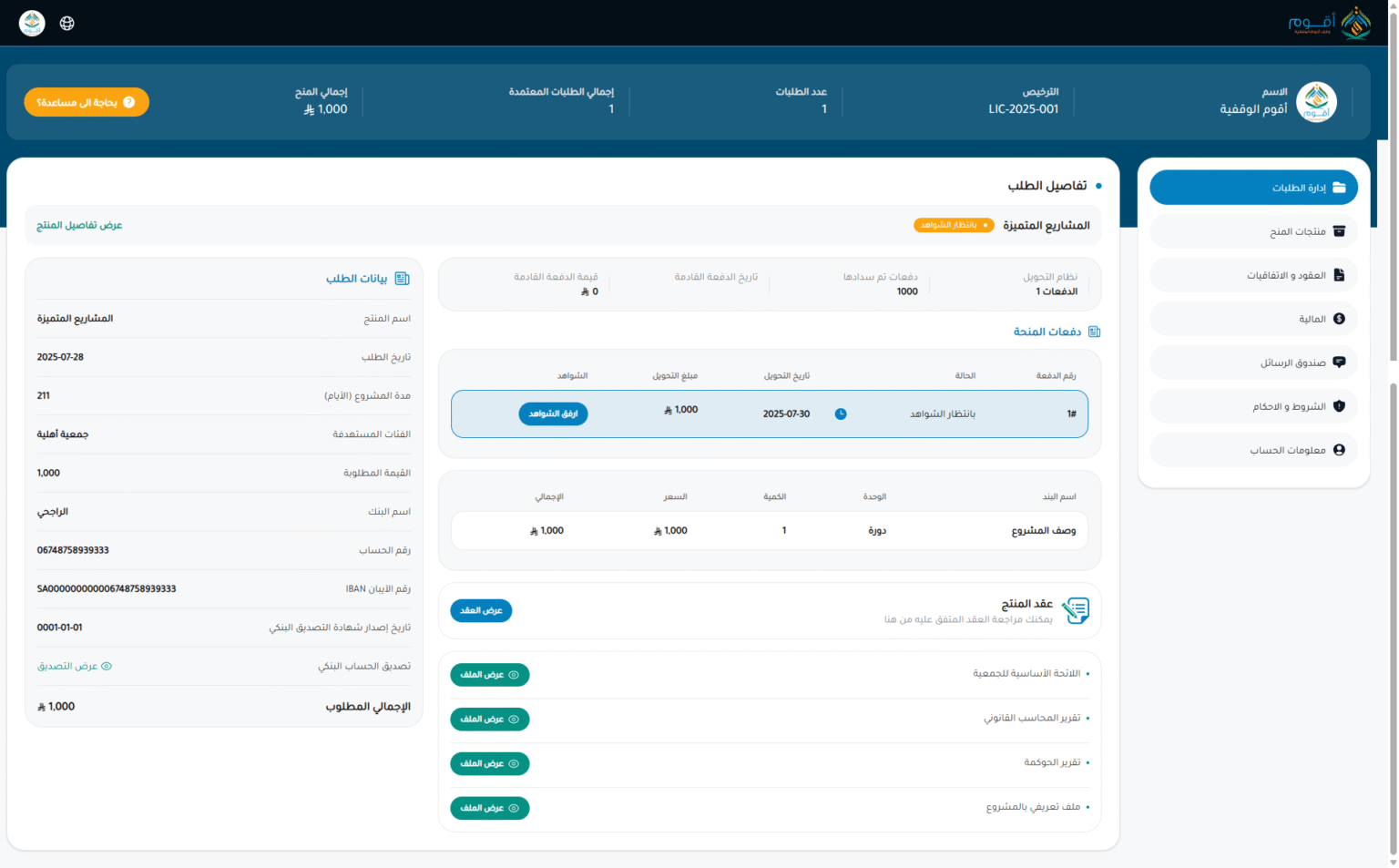 بوابة تمكن الجمعيات الخيرية من طلب منح مالية من اقوم الوقفية كما تتيح لاقوم تتبع انفاق المنح على المستفيدين